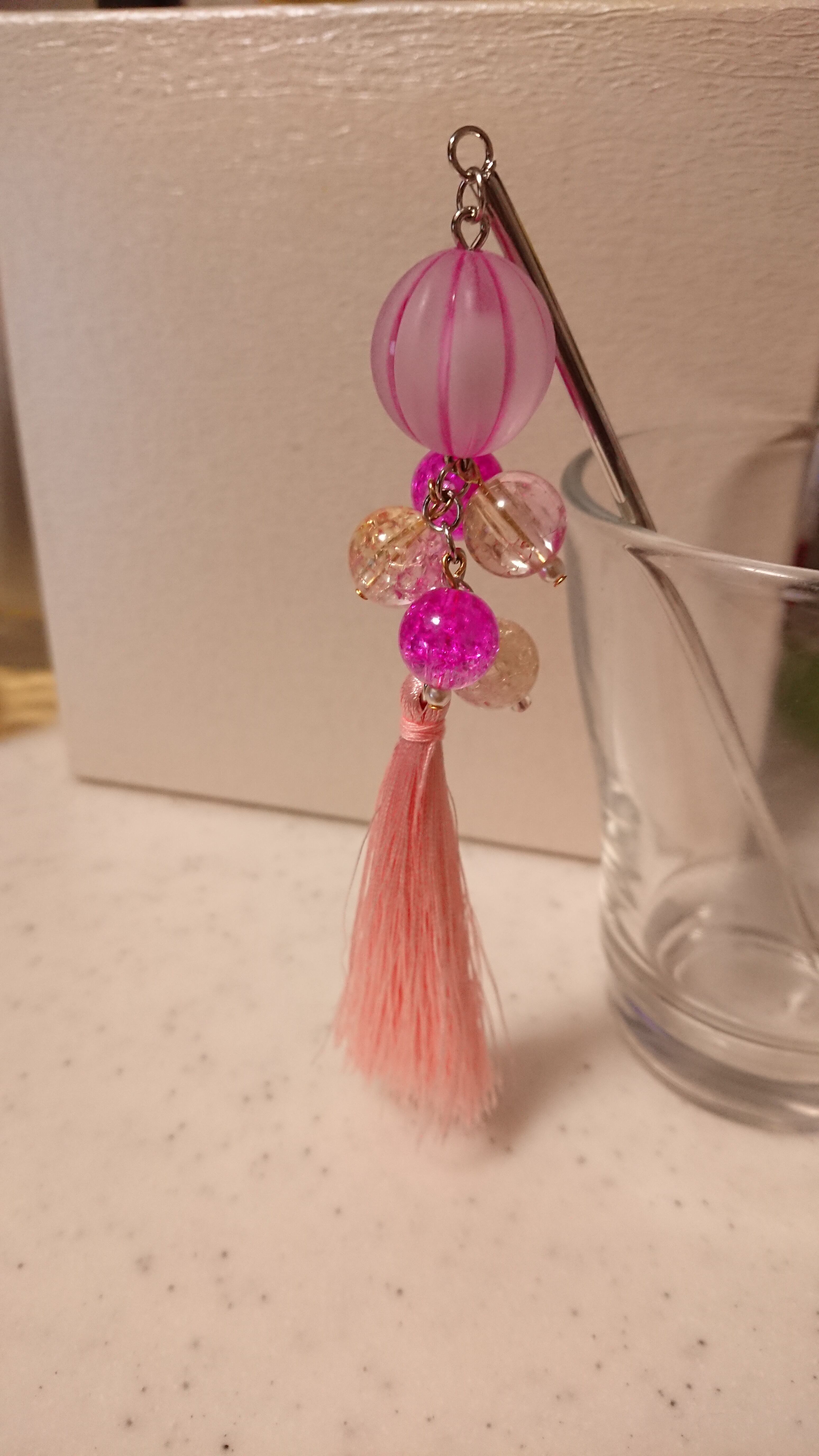 キャンディビーズにクラックルビーズを合わせてフリンジをつけました
