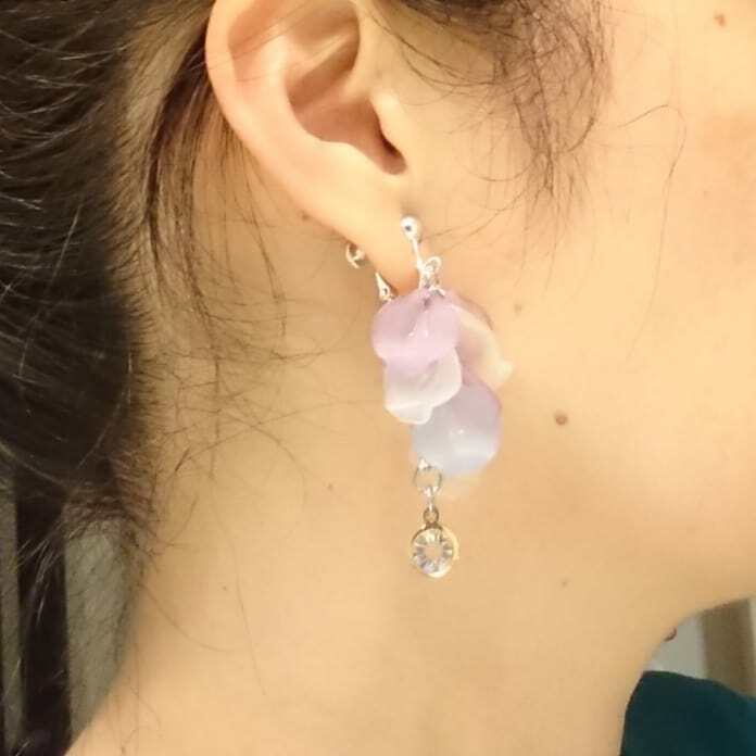アクリルの花びらパーツでイヤリングをつくりました